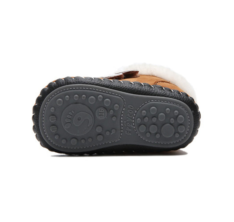 La única correa de velcro hace que sea muy fácil colocarlos en los pequeños pies cuando tienes prisa.